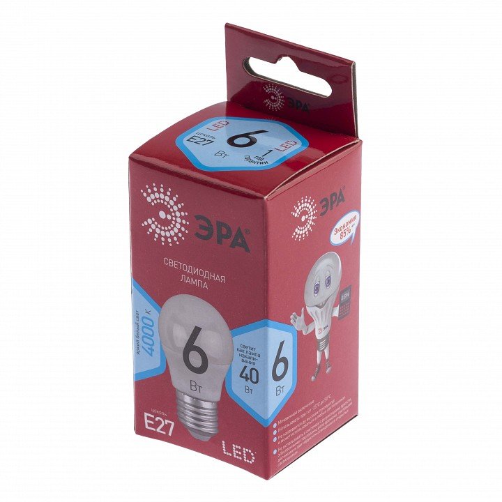 Главная Лампочки Лампа светодиодная ЭРА E27 6W 4000K матовая LED P45-6W-840-E27 R Б0049644