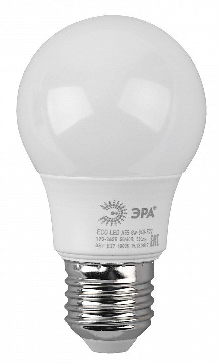 Лампа светодиодная ЭРА E27 8W 4000K матовая LED A55-8W-840-E27 R Б0052382