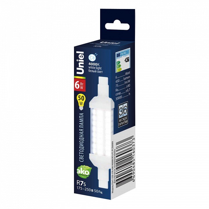 Лампочка светодиодная Uniel LED-J78-6W/4000K/R7s/CL PLZ06WH картон