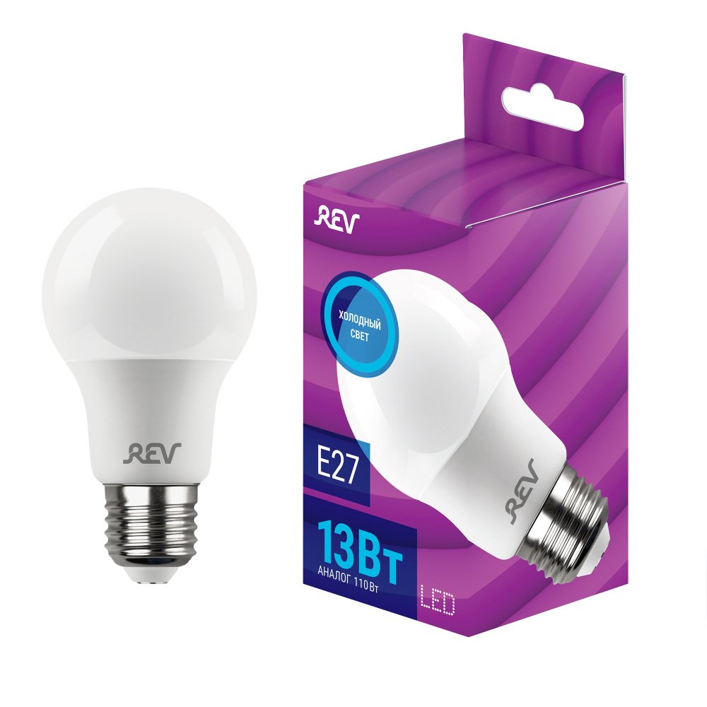 Главная Лампочки Лампа светодиодная REV A60 Е27 13W 6500K холодный белый свет груша 32529 1