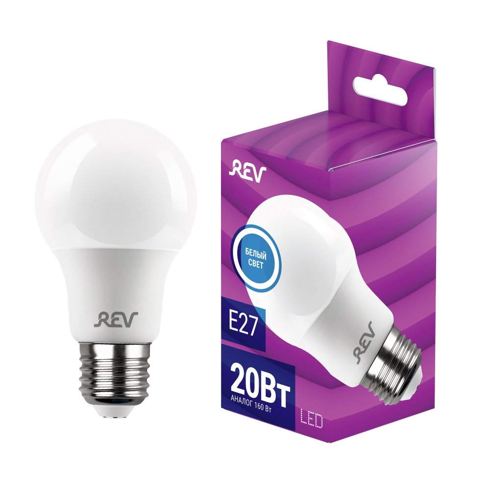 Главная Лампочки Лампа светодиодная REV A60 Е27 20W 4000K нейтральный белый свет груша 32405 8