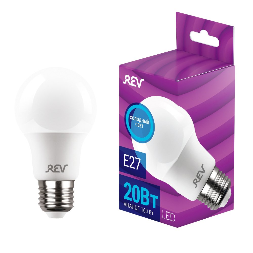 Главная Лампочки Лампа светодиодная REV A60 Е27 20W 6500K холодный белый свет груша 32531 4