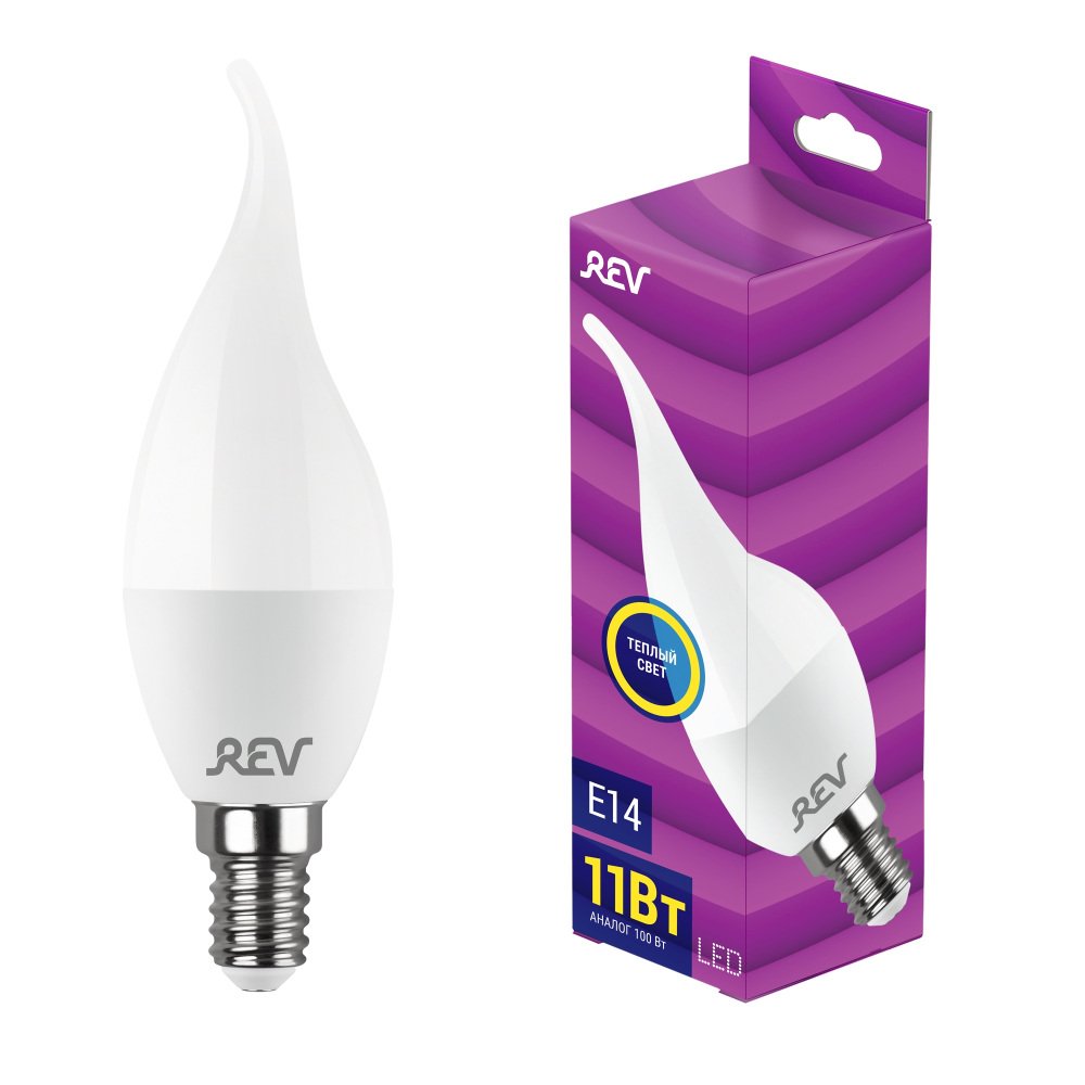 Главная Лампочки Лампа светодиодная REV FC37 Е14 11W 2700K теплый свет свеча на ветру 32516 1