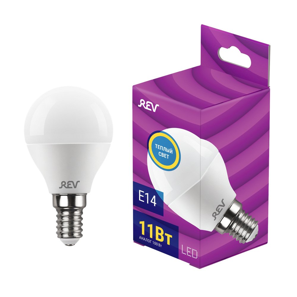 Лампа светодиодная REV G45 Е14 11W 2700K теплый свет шар 32505 5