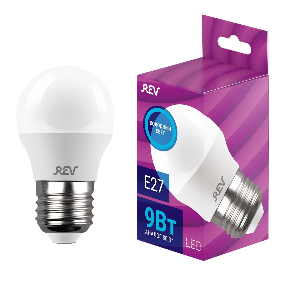 Главная Лампочки Лампа светодиодная REV G45 Е27 9W 6500K холодный белый свет шар 32519 2