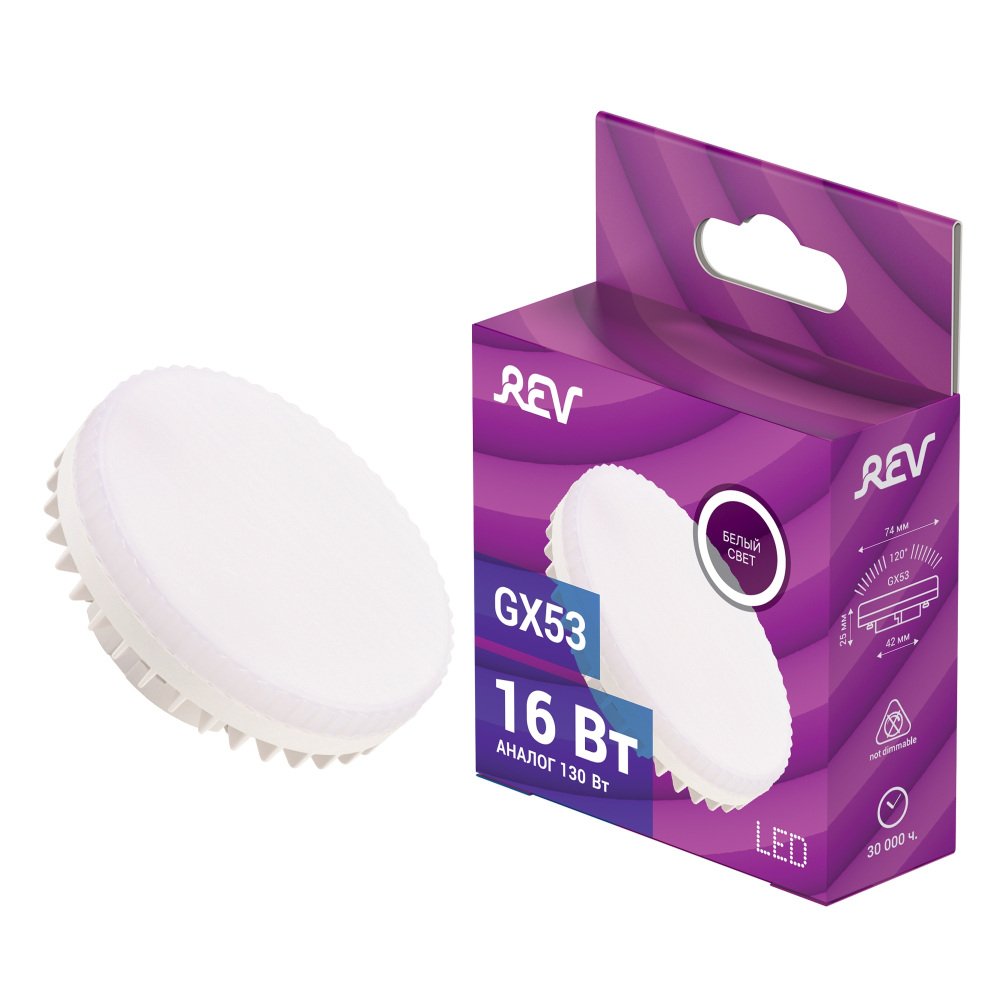 Станьте первым, кто оставит отзыв о товаре Лампа светодиодная REV GX53 16W 4000K нейтральный свет шар 32596 3.