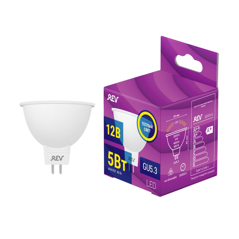 Лампа светодиодная REV MR16 GU5.3 5W 3000K теплый свет 12V рефлектор 32371 6