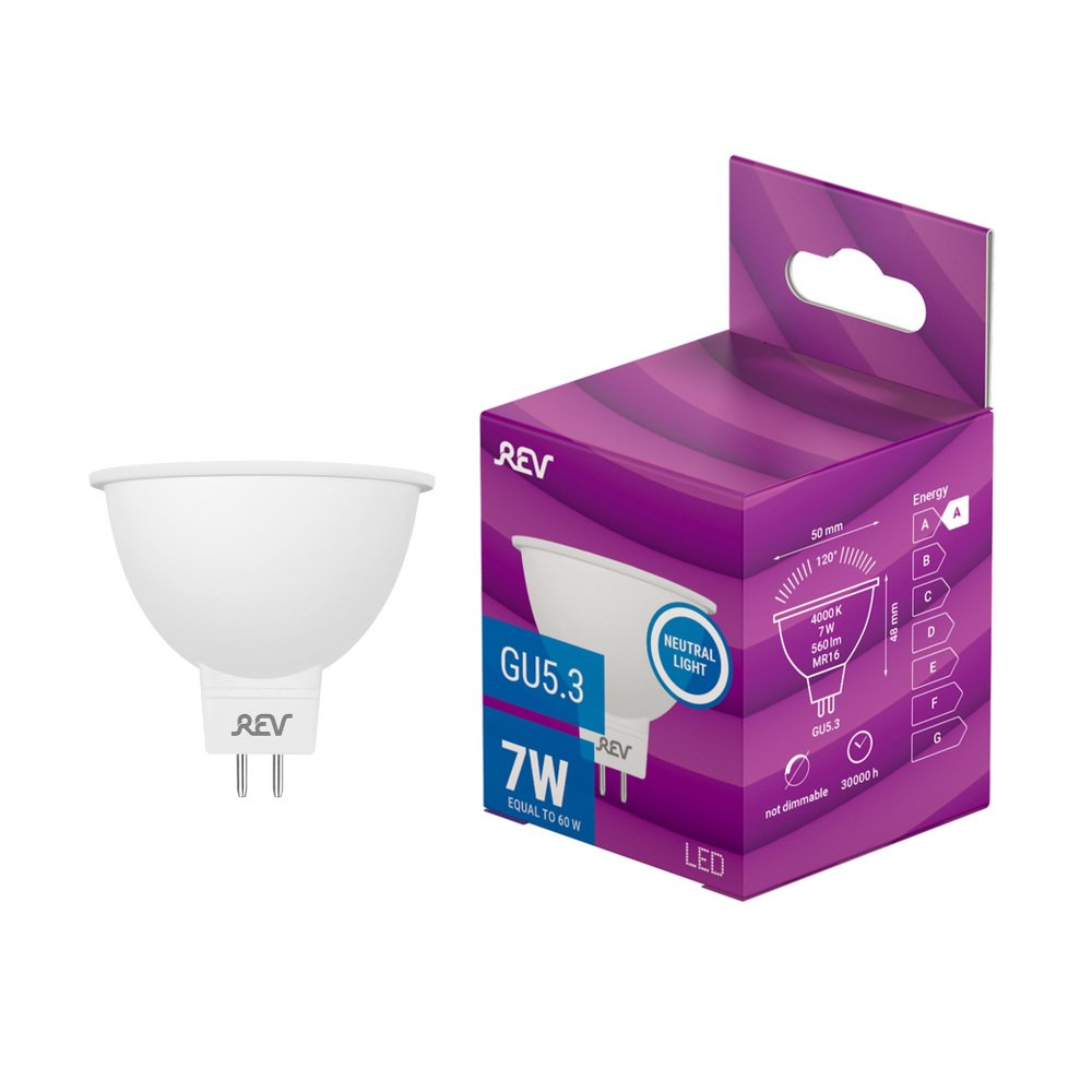 Станьте первым, кто оставит отзыв о товаре Лампа светодиодная REV MR16 GU5.3 7W 4000K нейтральный белый свет рефлектор 32325 9.