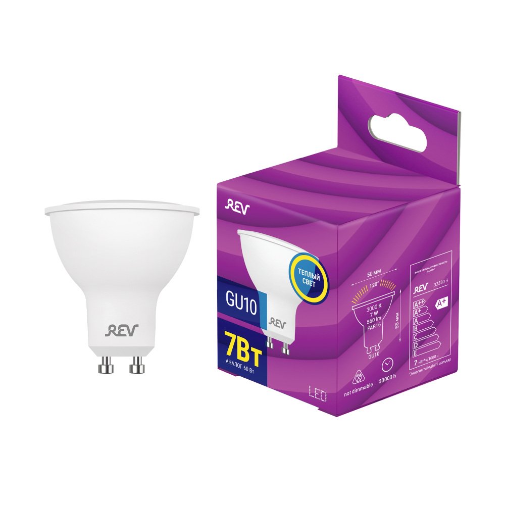 Лампа светодиодная REV PAR16 GU10 7W 3000K теплый свет рефлектор 32330 3