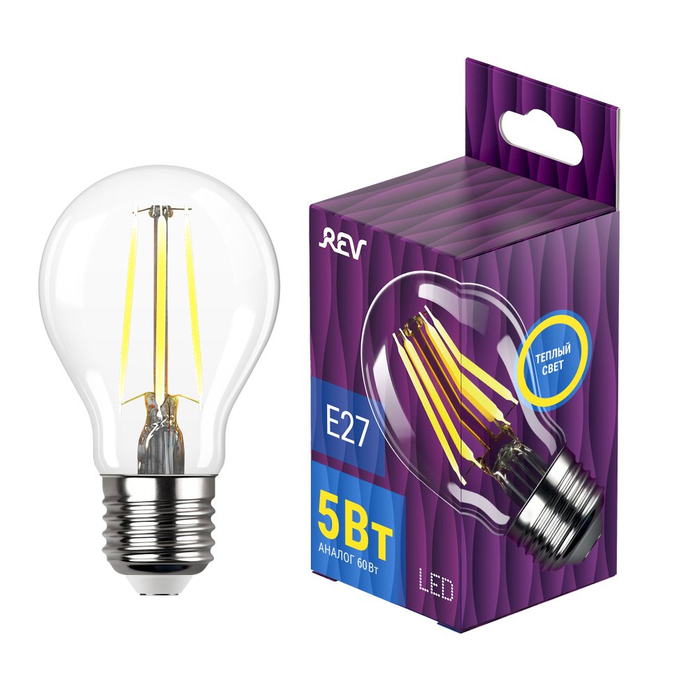 Главная Лампочки Лампа светодиодная филаментная REV A60 E27 5W 2700K DECO Premium груша 32422 5