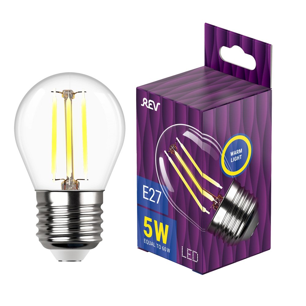 Главная Лампочки Лампа светодиодная филаментная REV G45 E27 5W 2700K DECO Premium теплый свет шар 32423 2