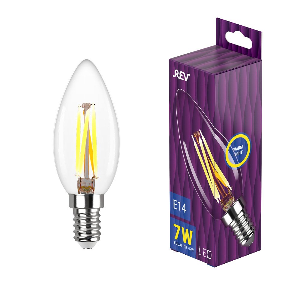 Главная Лампочки Лампа светодиодная филаментная REV С37 E14 7W 2700K DECO Premium теплый свет свеча 32486 7