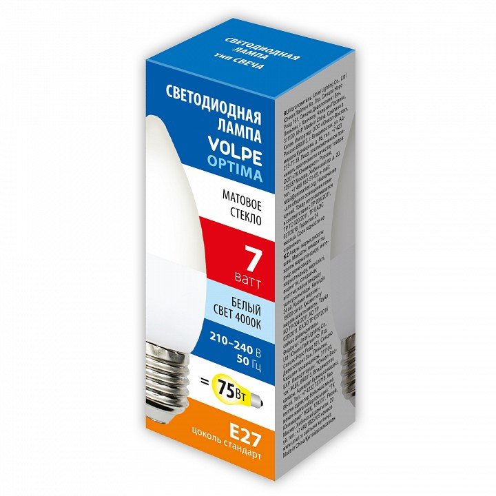 Главная Лампочки Лампа светодиодная Volpe E27 7W 4000K матовая LED-C37-7W/4000K/E27/FR/SLS UL-00008791