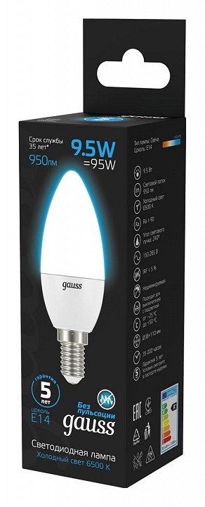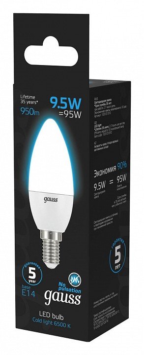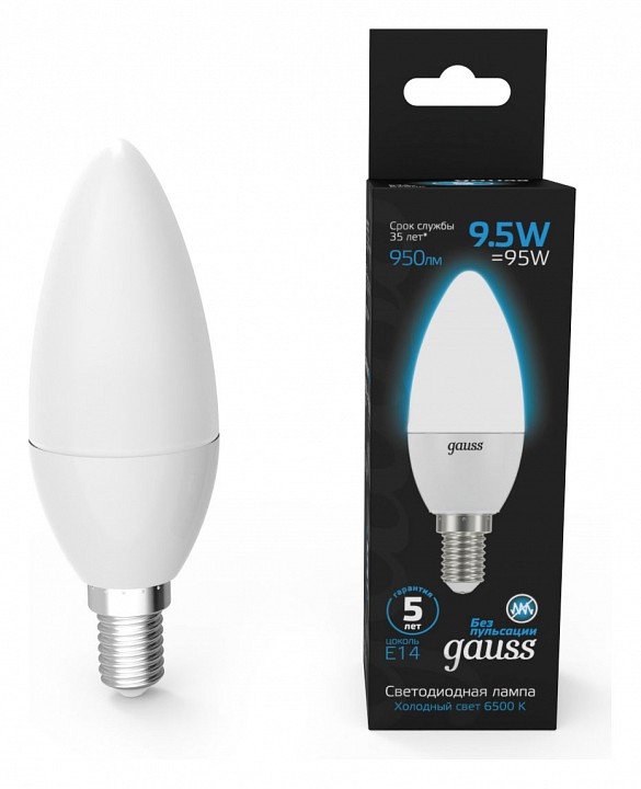 Главная Лампочки Лампа светодиодная Gauss E14 9.5W 6500K матовая 103101310