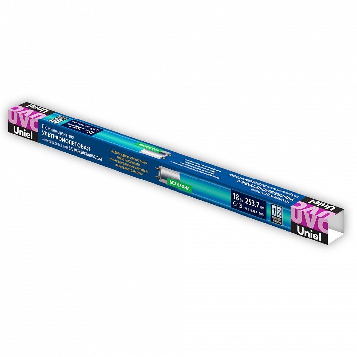 Главная Лампочки Лампа бактерицидная Uniel G13 18Вт K EFL-T8-18/UVCB/G13/CL