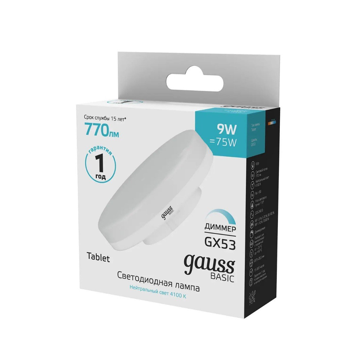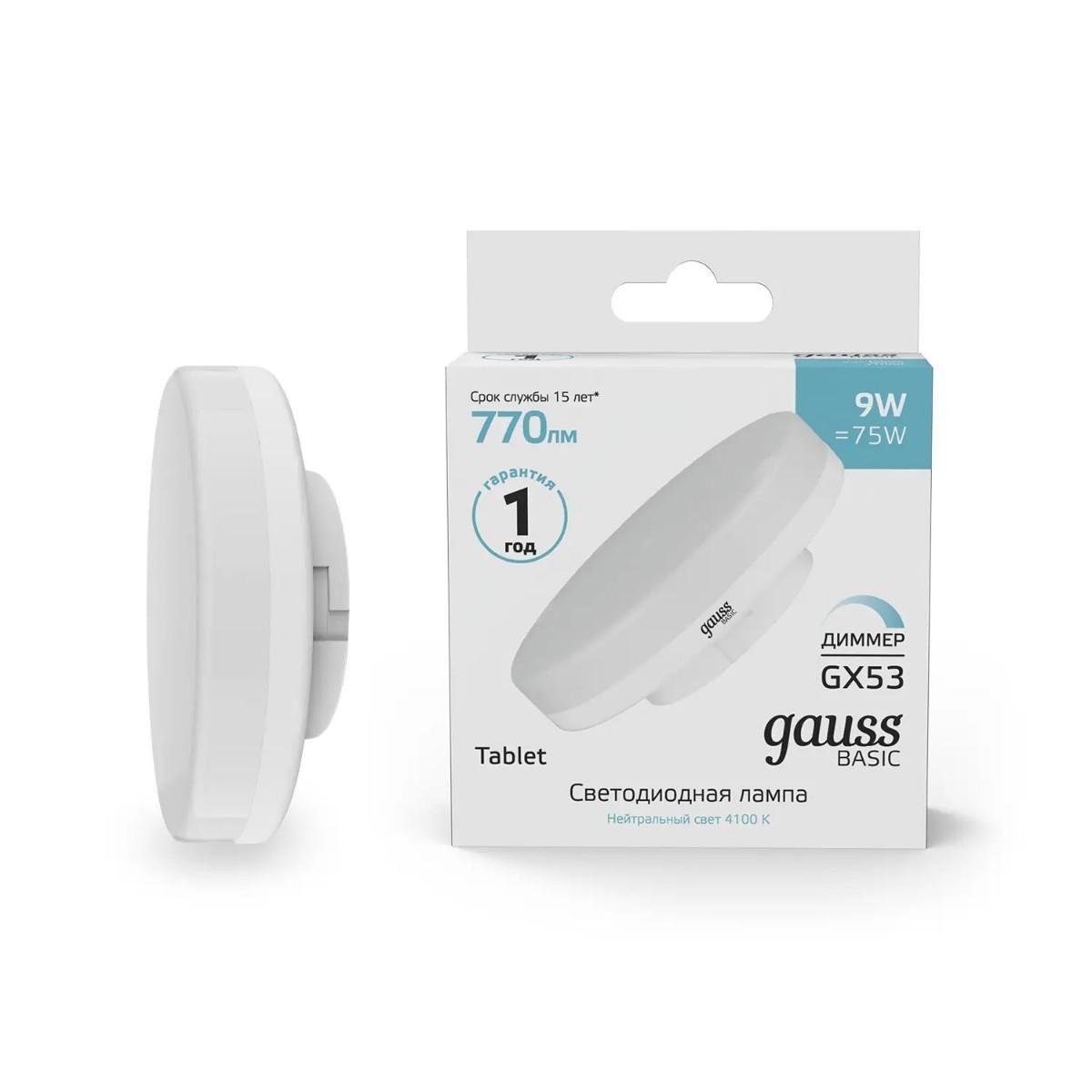 Лампа cветодиодная диммируемая Gauss GX53 9W 4000K матовая 20849292-D