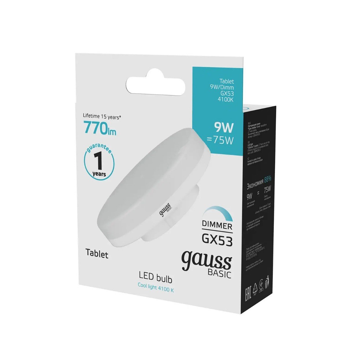 Главная Лампочки Лампа cветодиодная диммируемая Gauss GX53 9W 4000K матовая 20849292-D