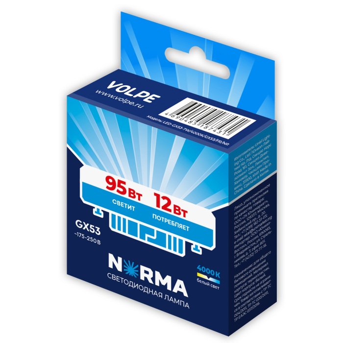 Главная Лампочки Лампа светодиодная Volpe GX53 12W 4000K матовая LED-GX53-12W/4000K/GX53/FR/NR UL-00011430