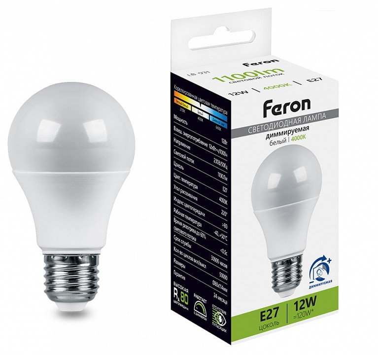 Станьте первым, кто оставит отзыв о товаре Лампа светодиодная диммируемая Feron E27 12W 4000K матовая 51053.