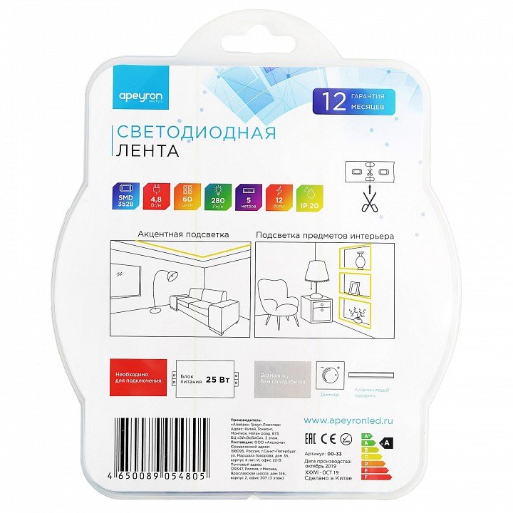 Лента светодиодная Apeyron Electrics Стандарт (в блистере) smd 3528 33BL