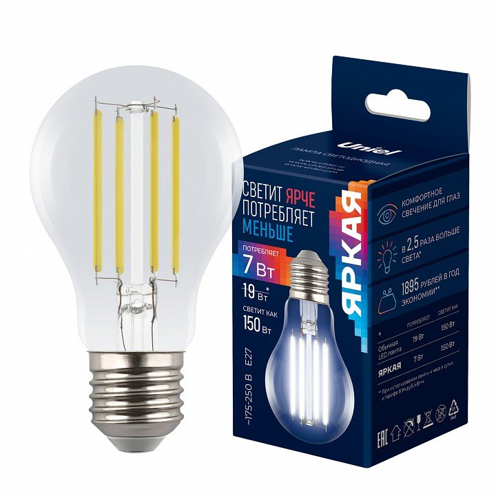 Лампа светодиодная Uniel ЯРКАЯ A++ E27 7Вт 4000K UL-00011935