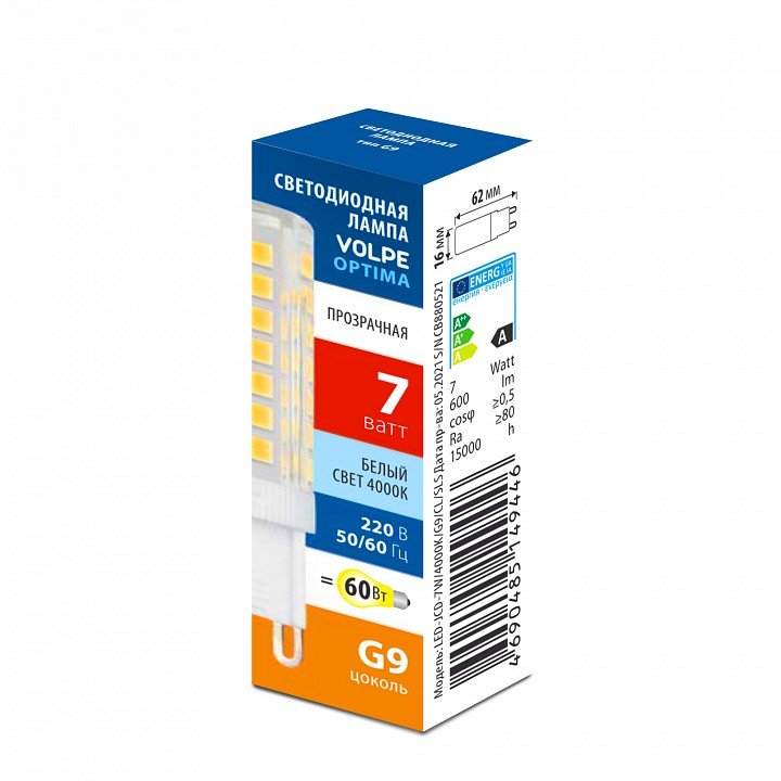 Главная Лампочки Лампа светодиодная Volpe OPTIMA G9 7Вт 4000K UL-00008654