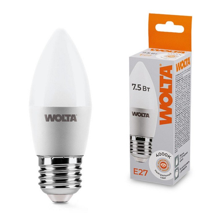 Главная Лампочки Лампа светодиодная Wolta E27 7.5Вт 4000K 25SC7.5E27