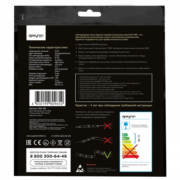 Станьте первым, кто оставит отзыв о товаре Лента светодиодная Apeyron Electrics R00-380.