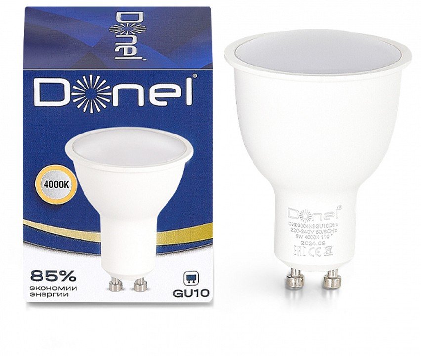 Главная Лампочки Лампа светодиодная Donel DN03 GU10 9Вт 4000K DN03004N9GU10Dim