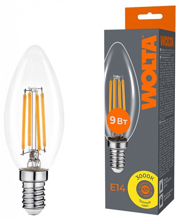 Лампа светодиодная Wolta E14 9Вт 3000K WF-C35-9W3KE14