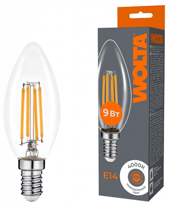 Лампа светодиодная Wolta E14 9Вт 4000K WF-C35-9W4KE14