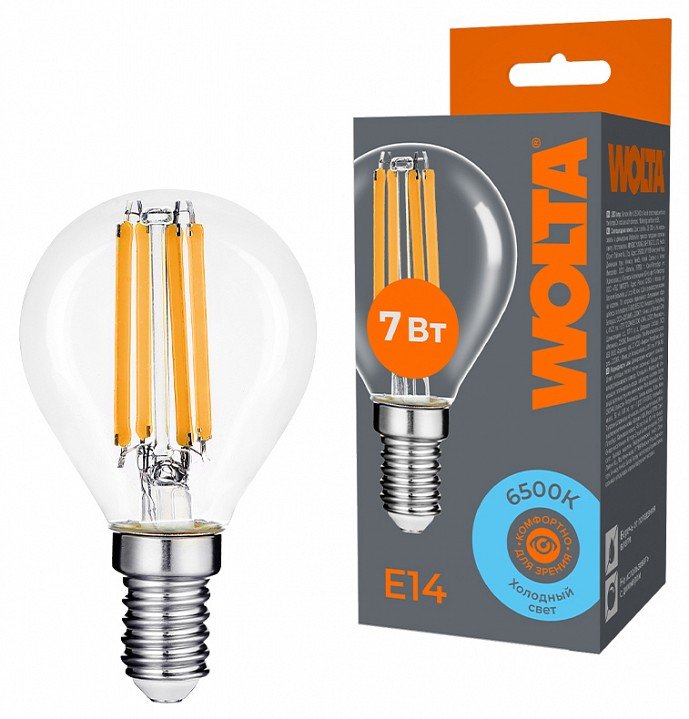 Лампа светодиодная Wolta E14 7Вт 6500K WF-G45-7W6KE14