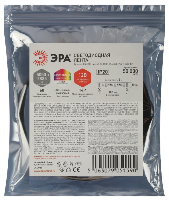 Артикул: LS5050-14,4-60-12-RGB+W(6500)-IP20-1 year-5m