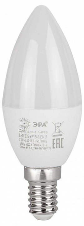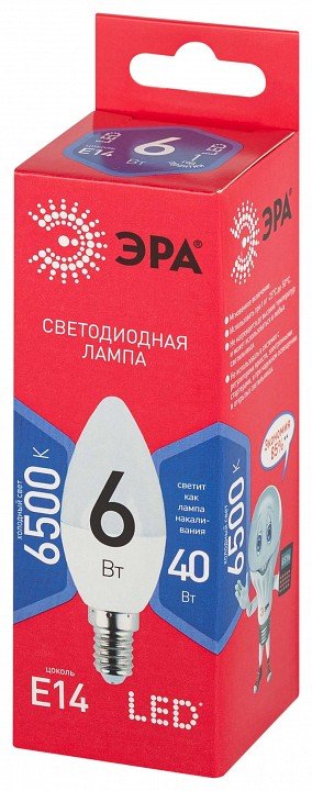 Главная Лампочки Лампа светодиодная Эра E14 6Вт 6500K LED B35-6W-865-E14 R