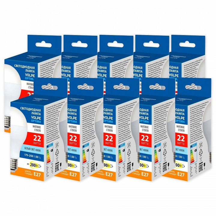 Главная Лампочки Набор из 10 ламп светодиодных Volpe OPTIMA E27 22Вт 4000K UL-00013837