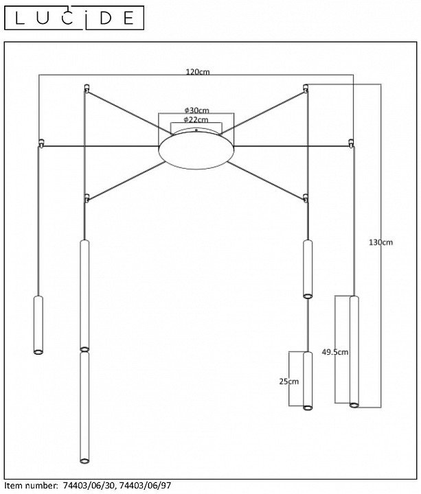 Станьте первым, кто оставит отзыв о товаре Подвесная светодиодная люстра Lucide Lorenz 74403/06/30.