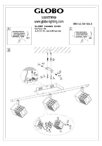 Станьте первым, кто оставит отзыв о товаре Настенно-потолочный светильник Globo Ankara 56193-3.