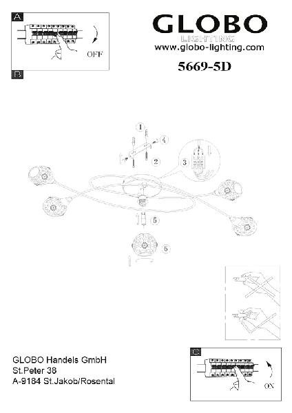 Станьте первым, кто оставит отзыв о товаре Потолочная люстра Globo Murano 5669-5D.