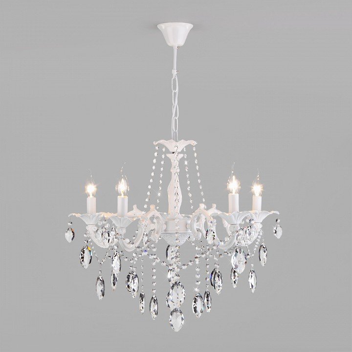 Главная Люстры и потолочные светильники Подвесная люстра Eurosvet Veletta 10108/5 белый/прозрачный хрусталь Strotskis