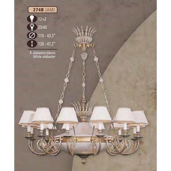 Подвесная люстра Riperlamp 274B 274B/12+2 AM WHITE ALABASTER - CREAM SHADE