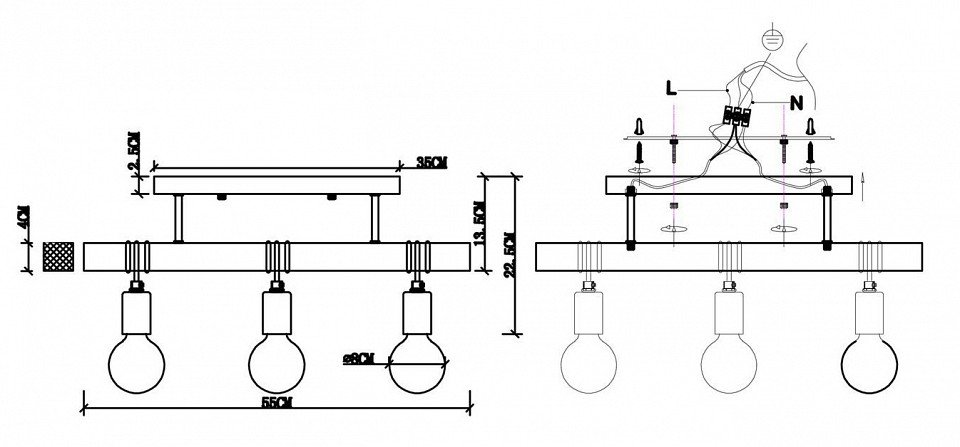 Количество ламп: 3