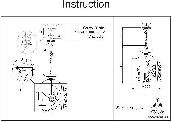 Станьте первым, кто оставит отзыв о товаре Подвесная люстра Maytoni Rustika H899-03-W.