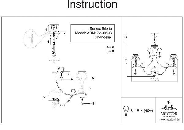 Станьте первым, кто оставит отзыв о товаре Подвесная люстра Maytoni Brionia ARM172-08-G.