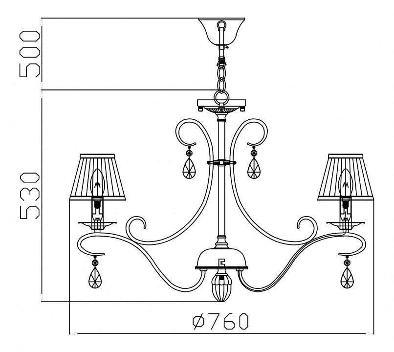 Высота без учета цепи, мм: 530