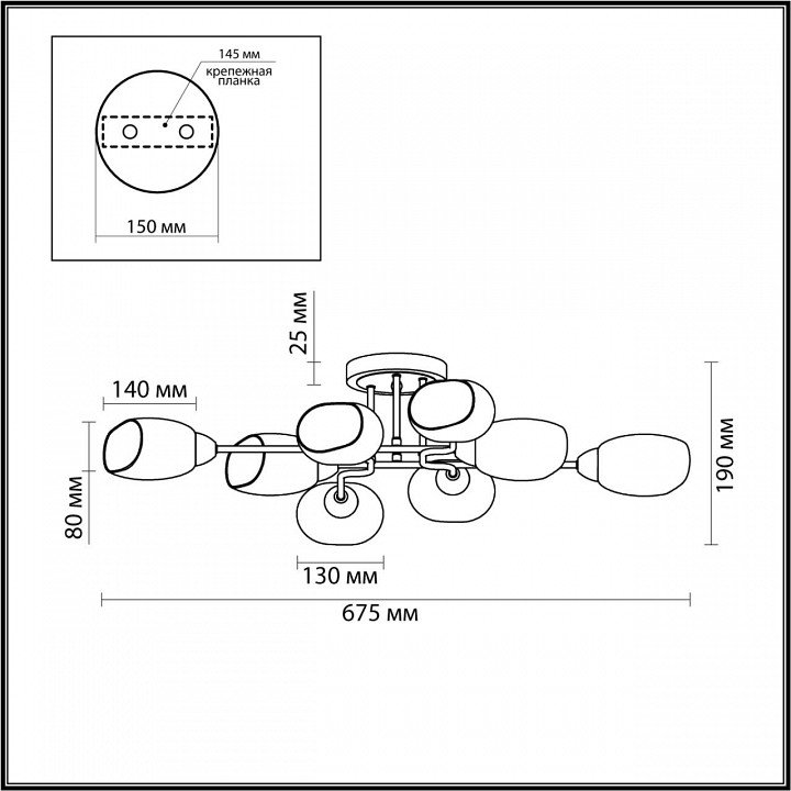 Основная форма светильника (Для подвесных люстр, потолочных люстр и подвесных светильников): Несколько плафонов