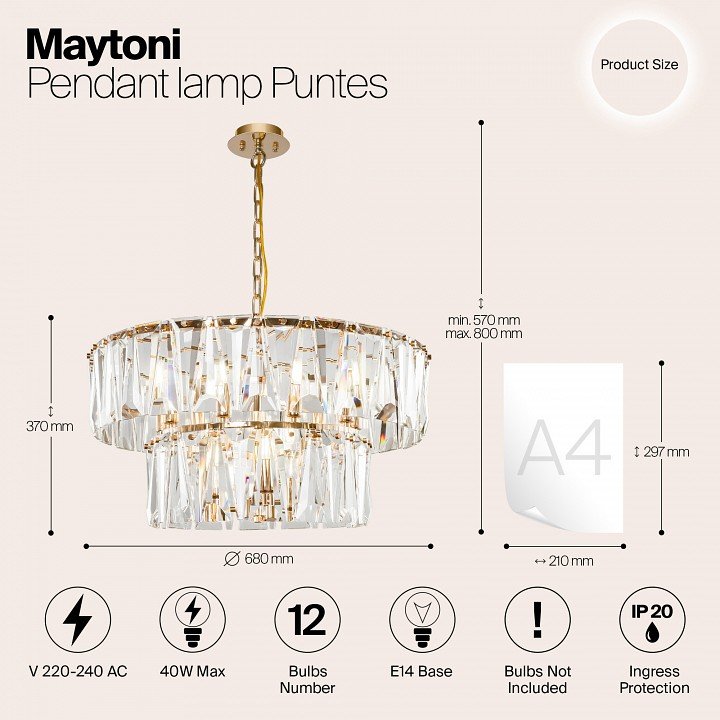 Станьте первым, кто оставит отзыв о товаре Подвесная люстра Maytoni Puntes MOD043PL-12G.