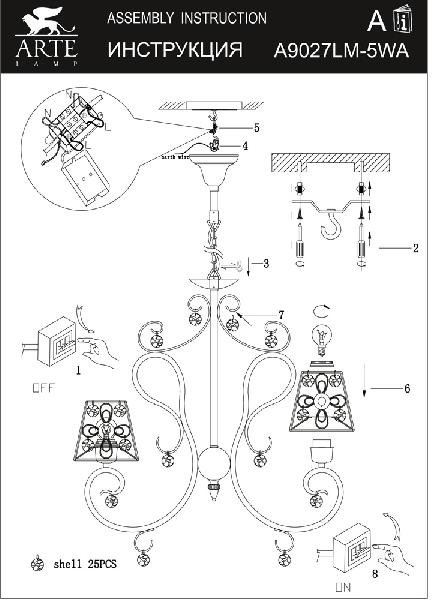 Станьте первым, кто оставит отзыв о товаре Подвесная люстра Arte Lamp Idillio A9027LM-5WA.