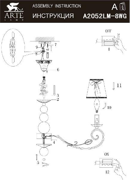 Главная Люстры и потолочные светильники Подвесная люстра Arte Lamp Jaggler A2052LM-8WG