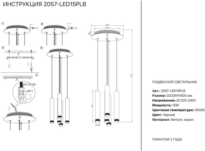 Длина подвеса, мм: 900