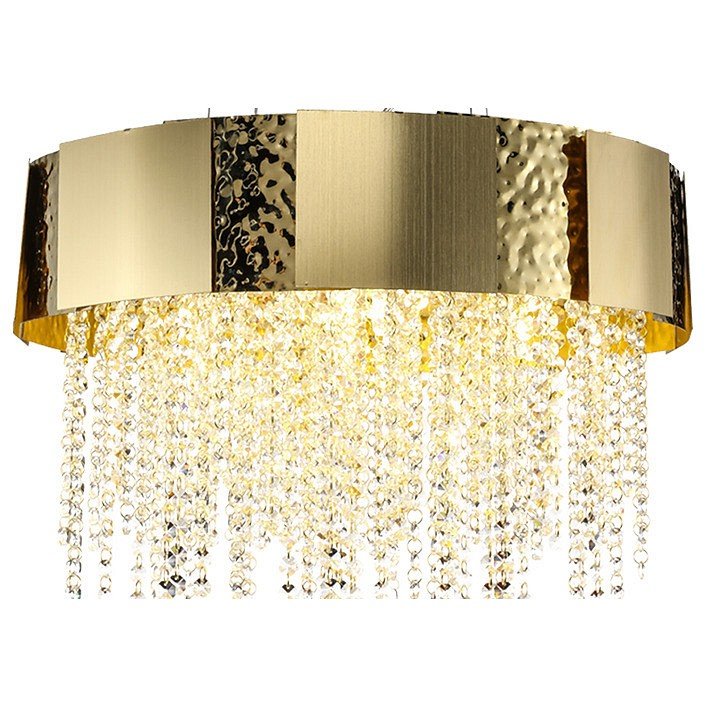 Эта люстра просто мечта! Сразу украсила комнату и все внимание приковано на нее. Сделана в цвете чистого золота. Поверхность абажура матовая с интересными глянцевыми элементами. Но главная фишка люстры – это подвесные элементы из стекла, которые создают особое шикарное сияние. Спасибо, я очень довольна покупкой!